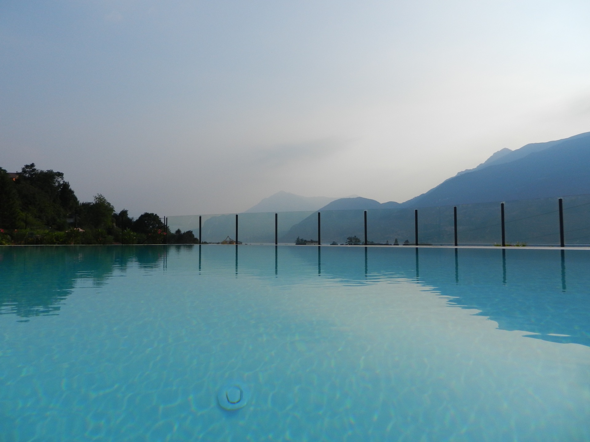 Piscina a sfioro, posta in posizione meravigliosa. affacciata sul lago di como e le sue montagne.